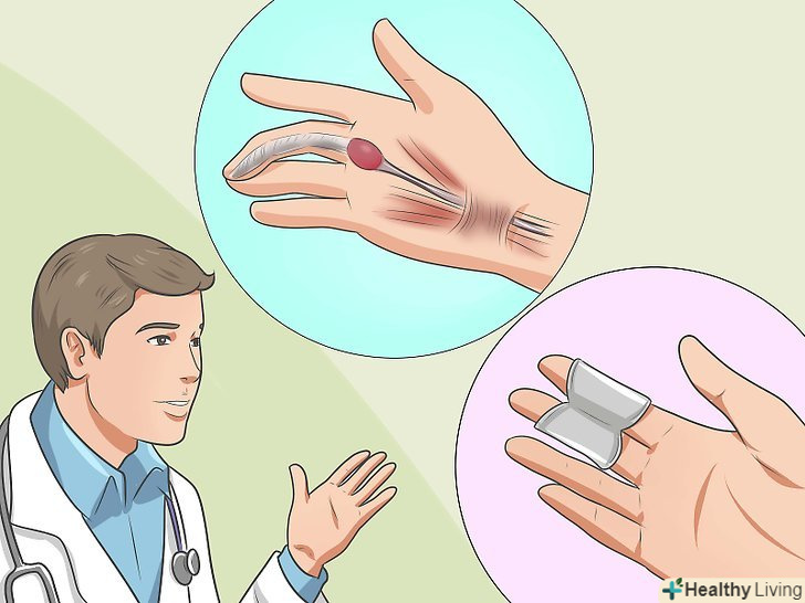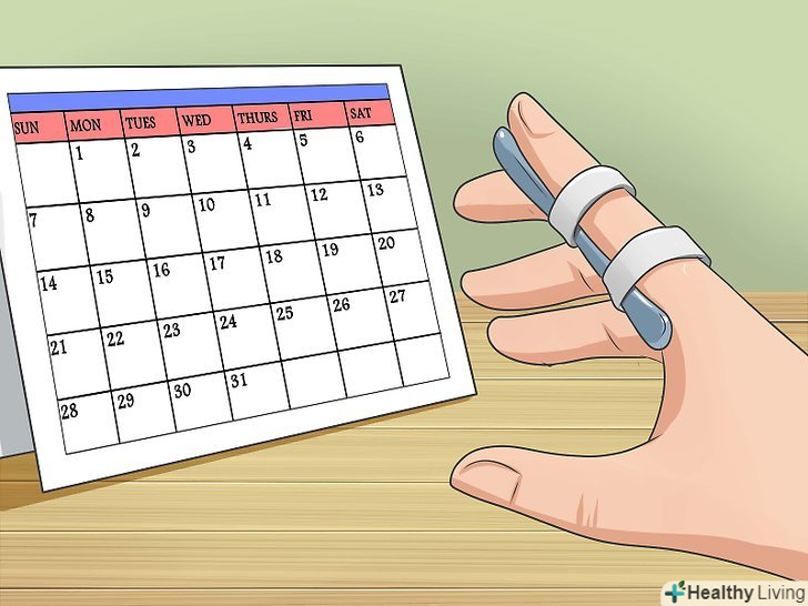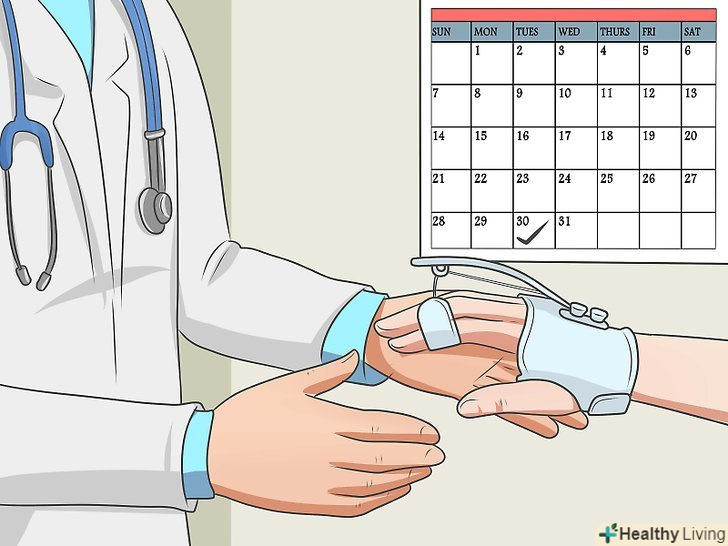 Призначте час наступних візитів до лікаря.лікар дасть вам докладні інструкції про те, як довго носити динамічну шину. Після цього заплануйте подальше обстеження, щоб лікар міг оцінити поліпшення стану вашого пальця.[24]- У разі будь-яких ускладнень, або якщо вам здається, що шина не допомагає, відвідайте лікаря, не чекаючи планового візиту. Швидше за все, лікар просто додатково відрегулює шину.