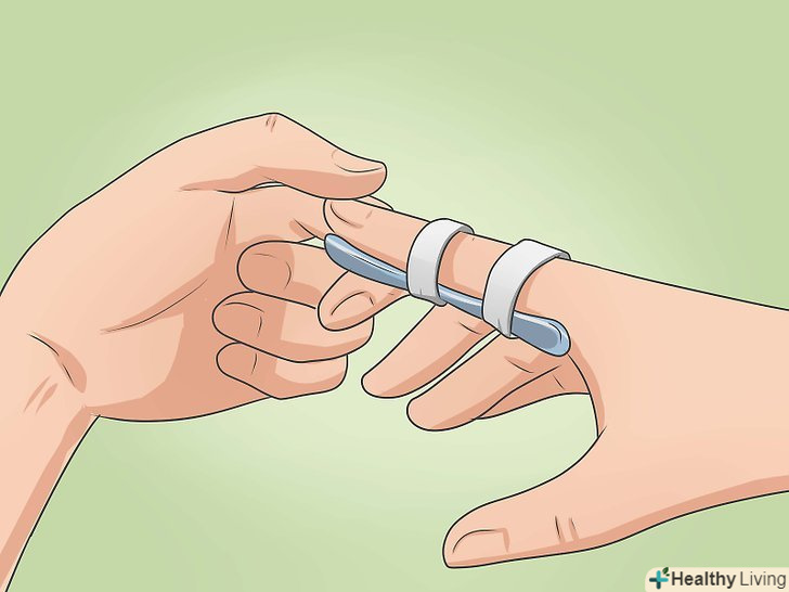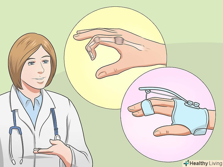 Відрегулюйте і накладіть динамічну шину.коли лікар порекомендує вам динамічну шину, він підбере, відрегулює і накладе її. Процедура полягає в наступному:[23]- Лікар попросить вас випрямити пошкоджений палець, підтримуючи його іншою рукою. У деяких ситуаціях потрібно, щоб палець був злегка зігнутий, в залежності від положення, яке потрібно виправити.