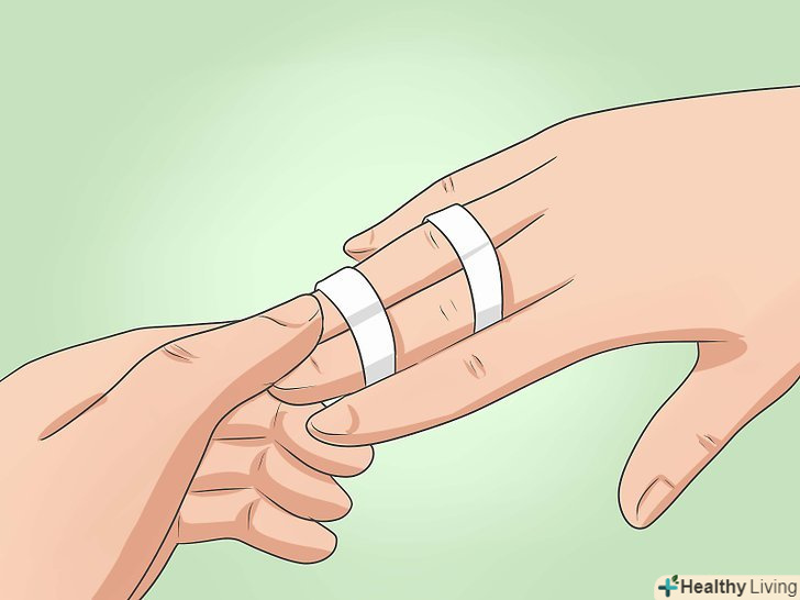 Дізнайтеся, в яких випадках можна використовувати в якості шини сусідній палець.ця техніка часто використовується для лікування клацає пальця при розтягуванні зв'язок або вивиху суглоба. Однак шинування зі здоровим пальцем не підходить для нестабільних суглобів і/або при переломах пальців.[7]- В даному методі хворий палець з'єднується зі здоровим, і вони обидва перемотуються. При цьому пластир накладається в двох точках: вище і нижче пошкодженого суглоба.
