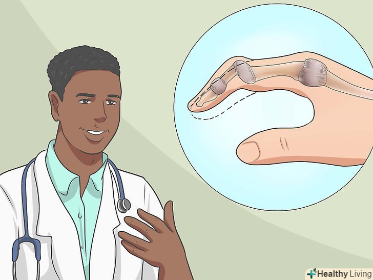Відвідайте лікаря.якщо випрямлення вказівного або великого пальця супроводжується клацанням або бавовною, цілком можливо, що у вас синдром клацає пальця. Однак діагноз повинен поставити фахівець, особливо якщо подібне не траплялося з вами раніше. Необхідно виключити інші можливі причини і захворювання.[1]- Пальці випрямляються і згинаються завдяки сухожиллям, які нагадують дуже гнучкі, прикріплені до кісток джгути. Сухожилля мають захищають і змащують їх оболонки (зазвичай у вигляді трубок). Якщо оболонка запалюється (наприклад, через перевантажень або захворювання), вона звужується і здавлює або навіть повністю знерухомлює сухожилля, в результаті чого в хворому пальці чутні тріскають або клацають звуки.