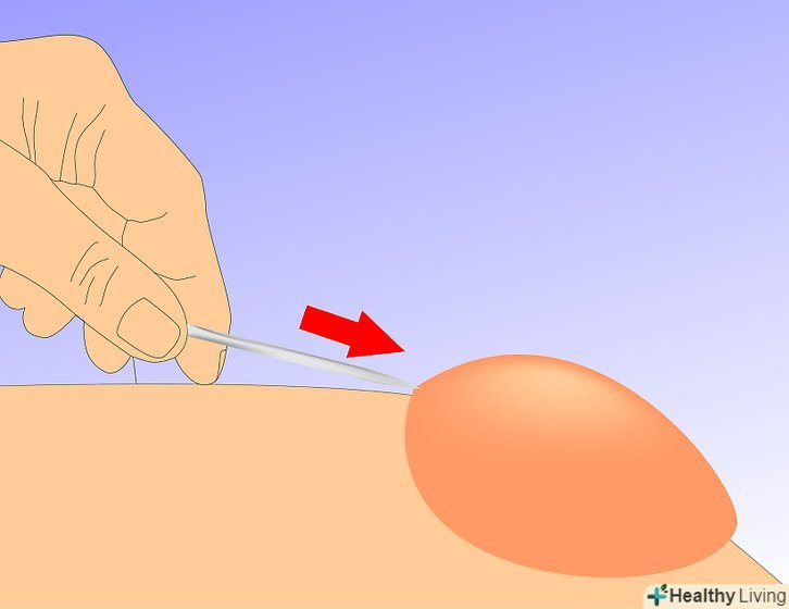 - Проткніть пухир біля основи швидким рухом, не заходячи глибоко всередину, щоб прокол вийшов якомога менше.