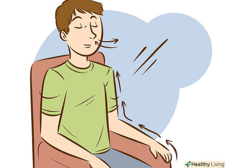 Спробуйте прогресивну релаксацію.ще одним способом взяти під контроль дихання і м'язи і розслабити свій розум, є прогресивна релаксація. Щоб її виконати, потрібно спочатку лягти. Дихайте спокійно, вичікуючи момент. Сконцентруйтеся на своїх пальцях і повністю їх розслабте. Як тільки це станеться, подумайте про свої щиколотки. Повільно, але вірно просувайтеся вгору по своєму тілу, не пропускаючи жодної його частини, незалежно від того, як би мала вона не була. Коли ви досягнете свого носа, ви відчуєте таку релаксацію, що не захочете вставати.- Також прогресивну релаксацію можна проробляти за допомогою дихання. Тепер ви починаєте концентруватися на своєму диханні, щоб воно стало повільним і рівномірним. Потім, на видиху випустіть частину свого напруги. Вдихайте, регулярно фокусуючись на диханні, і на наступному видиху знову випускайтенаступну порцію напруги. З кожним видихом, все більше і більше напруги буде виходити, і ви відчуєте себе більш розслабленим.