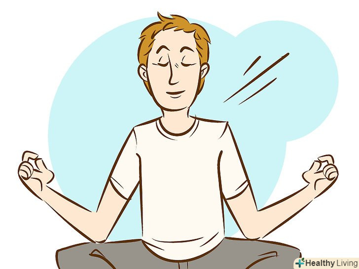 - Іншим поширеним методом є глибоке дихання своєю діафрагмою. Покладіть свою руку на черевну порожнину і повільно дихайте носом, рухаючи своїм животом, а не грудьми. Намагайтеся затримувати дихання на рахунок від 6 до 10 повільних вдихів в хвилину, і так по 10 хвилин в день.[12]