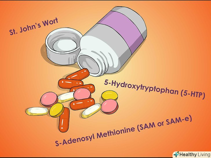 Спробуйте харчові добавки.у продажу є велика кількість біологічно активних добавок, які, за словами виробників, допомагають боротися з депресією. Завжди радьтеся з Вашим лікуючим лікарем, перед тим, як почати приймати добавки, так як багато хто з них можуть бути протипоказані під час прийому деяких рецептурних лікарських засобів.- Звіробій вважається ефективним засобом проти депресії і тривожних розладів.