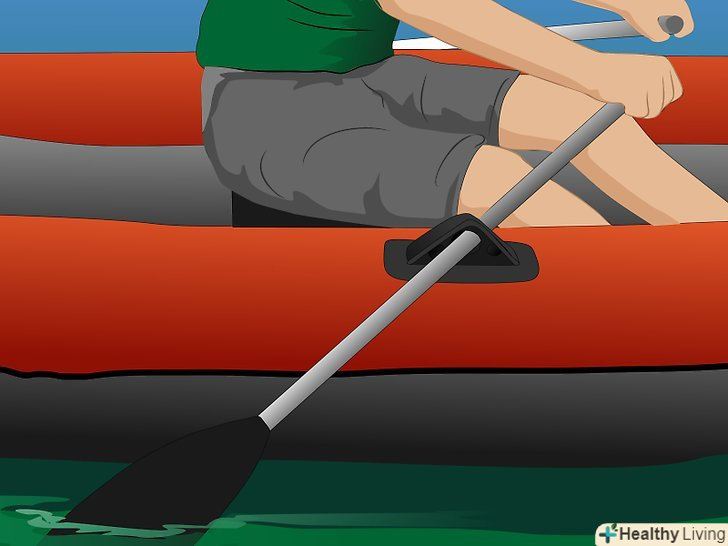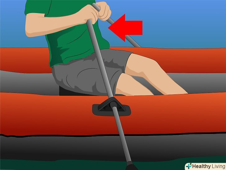 Заберіться в човен. Сядьте на місце, призначене для людини, яка буде гребти спиною до носа. Якщо в човні багато людей, то першим сідати людина, яка буде гребти, щоб контролювати човен з самого початку.