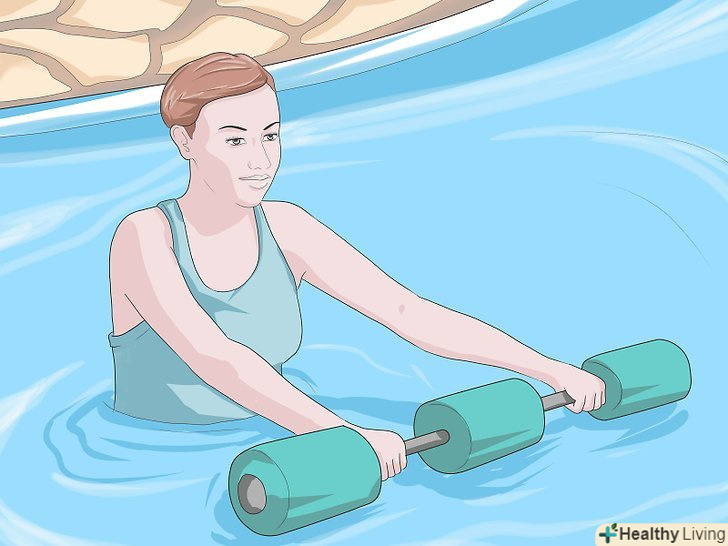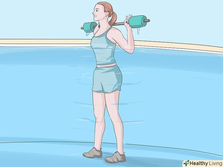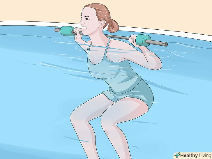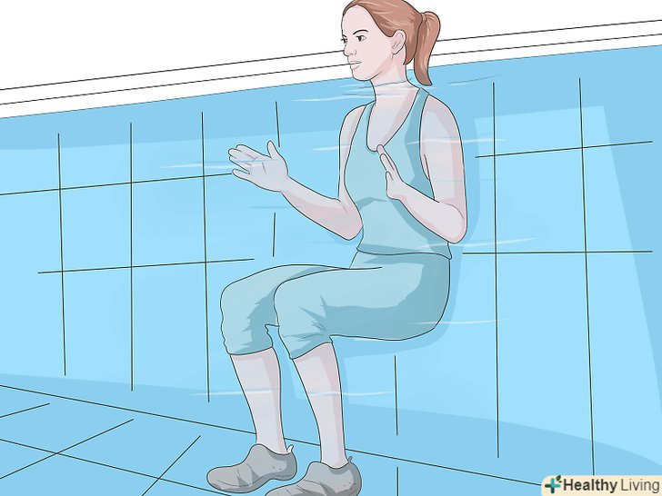 Робіть у воді легкоатлетичні вправи, піднімаючи тяжкості.зігніть ноги в колінах і притуліться спиною до борту басейну. Робіть поштовх акуратно, щоб не нашкодити спині.