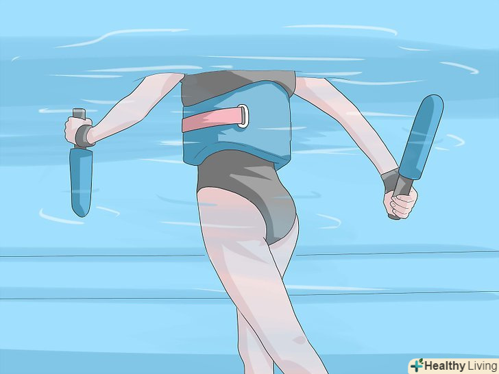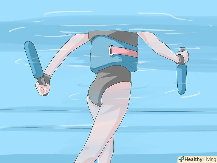 - Використовуйте інше обладнання, щоб підвищити опірність в процесі ходьби або пробіжок у воді. Використовуйте водні мембрани, рукавички, які відповідають розміру вашої руки, щоб збільшити опір і тонус м'язів при розмахуванні руками. Використовуйте водні Баласти при розмахуванні руками під час пробіжки у воді.