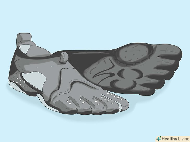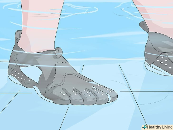 Купуйте водні черевики, якщо у вас є проблеми зі стійкістю або рівновагою.ці черевики доступні в більшості великих взуттєвих магазинів або в Інтернеті. Вони виготовлені з водостійкого матеріалу і мають підошву зі зчепленням, що дозволяє вам легше утримуватися на дні басейну.