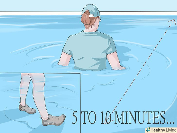 Пройдіться у воді протягом 5-10 хвилин.якщо ви відчуваєте себе комфортно, Роблячи такі рухи, і хочете продовжити, через 5 хвилин перейдіть на глибину, де вода доходить до рівня грудей. Ви повинні відчути збільшення опору.- Вправи для серцево-судинної системи лікують болі в спині тим же чином, що і ходьба. Вони розтягують і зміцнюють м'язи по всій спині і в ногах. Це також може призвести до втрати ваги, що допоможе зменшити хворобливий тиск на нерви, диски і м'язи.