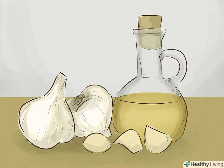 Часникова олія.часник-відмінний ароматизатор для будь-якої страви. Використовуйте в приготуванні страв часникове масло, щоб збільшити кількість часнику у вашому раціоні і посилити аромат продуктів. Крім іншого, Часникова олія дозволяє скоротити кількість прищиків або послабити псоріаз, якщо нанести його на уражену ділянку шкіри.[16]- Купуйте часникове масло в продуктовому або косметичному магазині. Також можна ароматизувати масло часником самостійно, вибравши потрібну концентрацію.[17] приготуйте цілі зубчики часнику при температурі 175 градусів Цельсія протягом 20-30 хвилин. Потім додайте часник в масло і готуйте ще 5 хвилин, після чого перелийте масло в підходящу ємність.[18] Масло буде ще більш корисним, якщо знизити температуру приготування до 120 градусів Цельсія.[19]