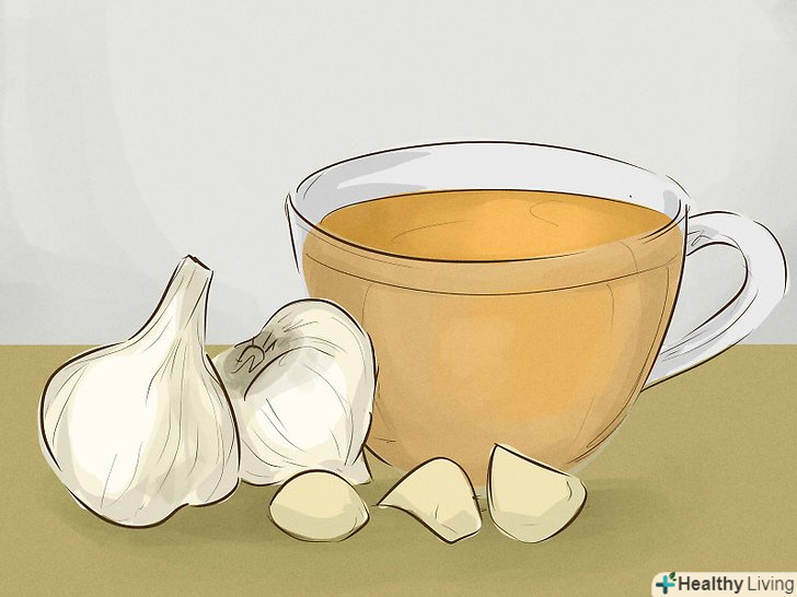 Приготуйте часниковий чай.при застуді завжди п'ють теплий чай. Приготуйте часниковий чай, щоб підтримати організм і зміцнити імунну систему. Залийте зубчик подрібненого часнику гарячою водою і залиште на кілька хвилин, а потім процідіть через сито і насолоджуйтеся ароматним чаєм.[20]- Додайте в чай трохи меду або імбиру для поліпшення смаку.