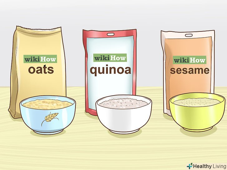 Їжте більше вівсянки, кіноа і кунжуту.цільнозерновий овес містить білок, що підвищує рівень пролактину, тому регулярно вживайте цільнозернові вівсяні пластівці. Те ж саме відноситься до кіноа і різним насінню, особливо до кунжуту.[10]
