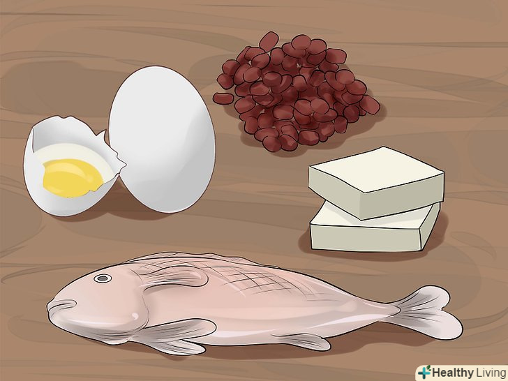 Віддавайте перевагу нежирним білковим продуктам.додавання в раціон нежирних і багатих білком продуктів дозволяє прискорити метаболізм, оскільки для перетравлення білків організму потрібно більше енергії. Вибирайте такі продукти, як індичка, риба, яйця, бобові і тофу.[2]- Сир є хорошим джерелом білка казеїну. Особливо корисно з'їдати сир перед сном-в цьому випадку він поступово перетравлюється всю ніч, підтримуючи метаболізм на підвищеному рівні.