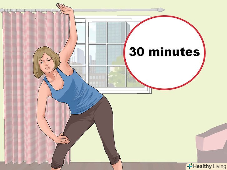 Виконуйте аеробні вправи хоча б по 30 хвилин щодня.крім того, що ці вправи сприяють спалюванню калорій під час тренування, вони прискорюють метаболізм і після неї. Якщо вам важко безперервно тренуватися протягом 30 хвилин, виконуйте вправи по 5, 10 або 15 хвилин з невеликими перервами.[5]- Якщо раніше ви не займалися регулярно фізичними вправами, то, почавши тренування, ви помітите підвищення апетиту. Так і повинно бути! Таким чином ваш організм повідомляє вам про те, що йому потрібно більше енергії для того, щоб компенсувати збільшені витрати калорій.