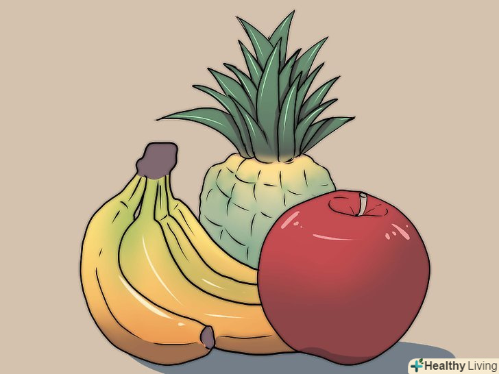 Налягайте на клітковину.Низьковуглеводна їжа з високим вмістом клітковини довше перетравлюється і довше зберігає відчуття ситості і знижує ймовірність необхідності перекушувати. Шпинат, брокколі, спаржа і цвітна капуста – все це здорова їжа з високим вмістом клітковини.- До того ж вміст клітковини, відкушування і жування цілого фрукта стимулює ваші почуття і з'їсти їх займає більше часу. Таким чином, психологічно, це більше задовольняє, ніж напої і м'яка їжа. Жування також сприяє виробленню слини і шлункового соку, що допомагає заповнити шлунок.
