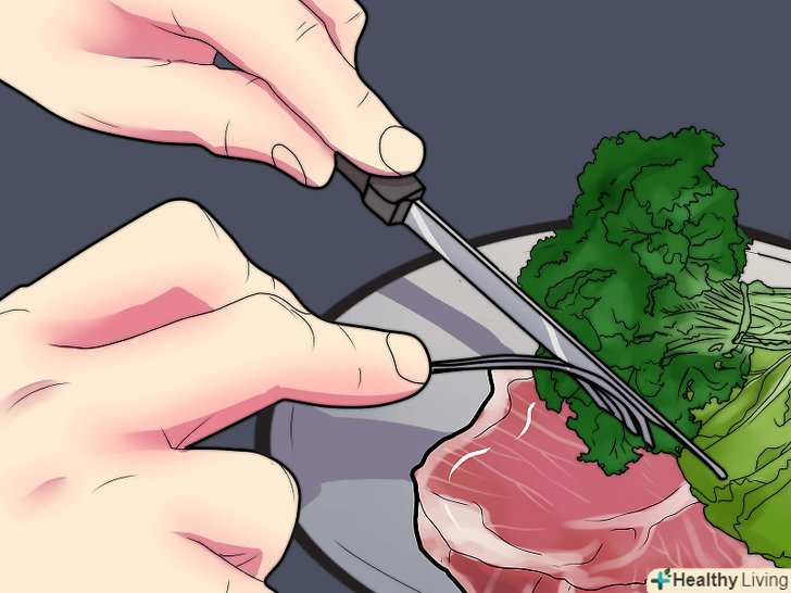 Їжте часто і потроху.організм більшості людей витрачає більше енергії на перетравлення маленьких порцій кожні кілька годин, ніж споживання тієї ж кількості калорій в два або три присісти.- Часті прийоми їжі-це напрочуд гарна ідея, тому що допомагає вам уникнути метаболічного спаду. Ви обдурите ваш організм, і він буде думати, що він постійно їсть і, таким чином, ніколи не буде знижувати процес метаболізму. Орієнтуйтеся на 5 маленьких прийомів їжі (по 200-500 калорій) замість трьох великих прийомів їжі в день. Також намагайтеся не робити перерв в їжі більше 4 годин. Якщо, наприклад, ви снідали о 7 ранку, то ви повинні перекусити о 10, пообідати опівдні, ще один перекус о 3 годині дня і вечерю о 7 годині вечора.