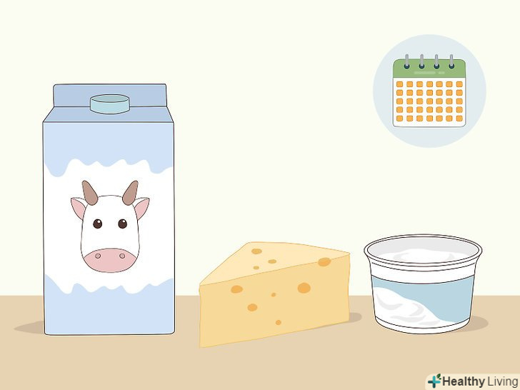 Щоденна порція молочних продуктів сприяє зростанню організму.у молочних продуктах міститься білок, кальцій і вітаміни. Хорошим вибором стане не тільки молоко, але також сир і йогурт. Щодня вживайте одну порцію улюбленого молочного продукту.[6]- Наприклад, це може бути 240 мілілітрів молока, 180 мілілітрів йогурту або 30 грамів сиру.