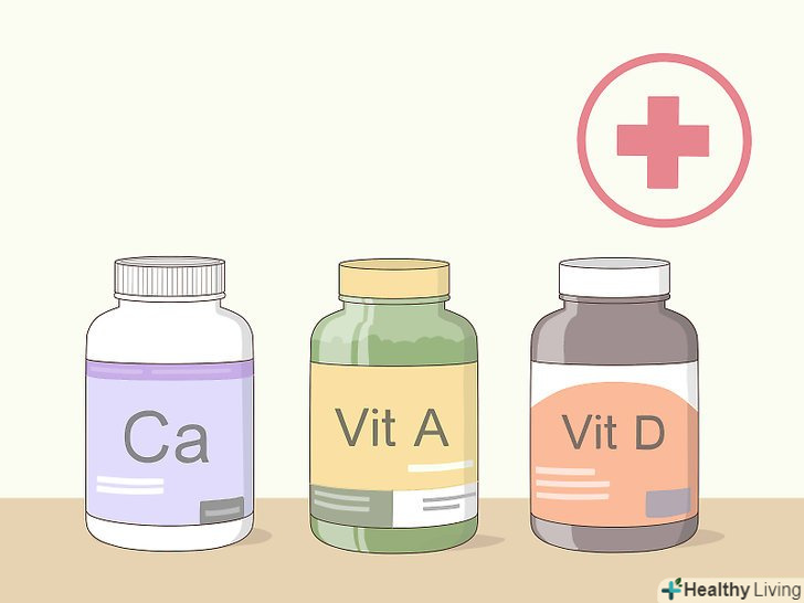 Приймайте добавки з кальцієм і вітамінами після консультації з лікарем.добавки сприяють зростанню, так як вони допомагають задовольняти харчові потреби. Кальцій, вітаміни A і D будуть особливо корисні для ваших кісток. Обговоріть можливість прийому добавок з лікарем.[7]- Наприклад, можна щодня приймати полівітаміни і кальцієві добавки.
