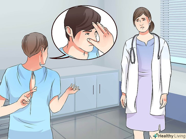 Ситуації, в яких проявляються симптоми.людина може повідомляти про симптоми тільки в присутності інших людей. Якщо людина одна або нікого немає поблизу, то симптоми можуть ніяк не проявлятися. Також вони можуть проявлятися тільки в ситуаціях, коли за людиною спостерігають лікарі або друзі і родичі.[10]- Запитайте, коли проявляються симптоми. Вони загострюються в присутності близьких або друзів? Як проходить лікування за відсутності родичів? Чи бажає людина, щоб рідні брали участь в процесі лікування?