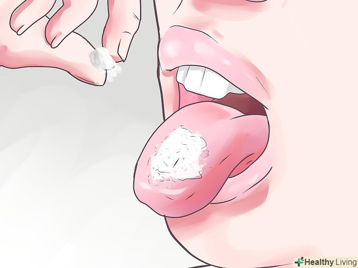 ВикористовуйтеЛьодяники від кашлю .купуйте такі льодяники, в яких міститься бензокаїн, ментол або фенол. Такі інгредієнти діють як місцевий анестетик, викликають оніміння мови і полегшують біль. Замість льодяників можна використовувати анестетичну рідину для полоскання рота, до складу якої входять аналогічні компоненти.