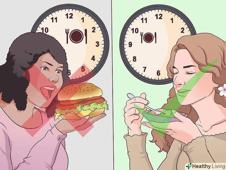 Їжте маленькими порціями. Намагайтеся їсти частіше, але потроху. Це краще, ніж два або три великих прийому їжі протягом дня.
