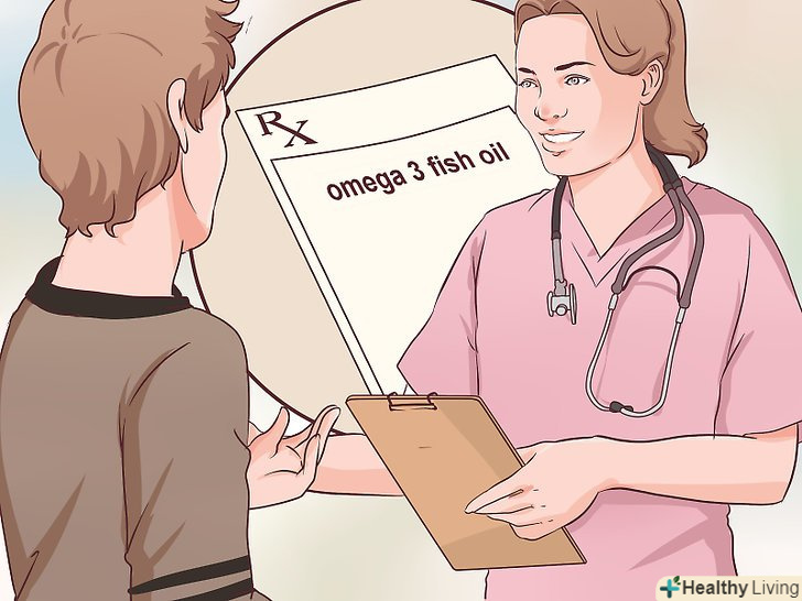 - Приймайте високі дози омега - 3 відповідно до інструкцій і під наглядом лікаря, оскільки вони можуть взаємодіяти з іншими лікарськими препаратами.[10] занадто велика кількість омега - 3 викликає надмірне розрідження крові і знижує кров'яний тиск. Вони також можуть підвищувати рівень цукру в крові і призводити до порушення функцій печінки. Крім того, внаслідок прийому великих доз омега-3 можливі психічні розлади.