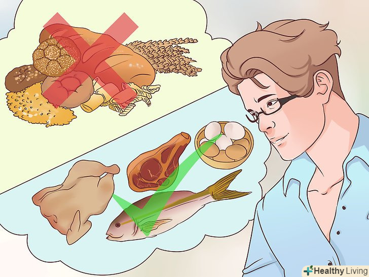 - Зменшіть споживання продуктів з високим вмістом вуглеводів. Включайте в свій раціон більше білкової їжі. Білки мають нижчий "глікемічний індекс" у порівнянні з вуглеводами, а це означає, що вони перетравлюються і поглинаються повільніше. Це в свою чергу допомагає знизити рівень цукру в крові і рівень ліпідів (включаючи рівень тригліцеридів). Включайте також в свій раціон здорові жири, оскільки вони допомагають стабілізувати рівень цукру в крові і знизити рівень тригліцеридів.