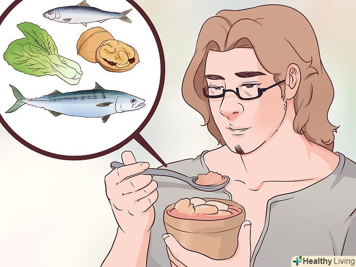 Включайте в свій раціон продукти, багаті омега-3 жирними кислотами. [2] Омега-3 жирні кислоти вважаються» хорошими " жирами, тому їх регулярне споживання може допомогти організму знизити рівень тригліцеридів.- Включайте в свій раціон приблизно дві порції жирної риби в тиждень. Якщо ви будете робити це регулярно, то, ймовірно, вже незабаром помітите зниження рівня тригліцеридів.