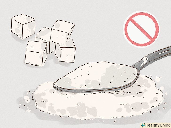 Уникайте доданого цукру. надмірне споживання цукру на регулярній основі може сильно підвищити рівень цукру в крові, що в довгостроковій перспективі збільшує ризик серцево-судинних захворювань, діабету і деяких видів раку. [21] уважно читайте склад продуктів і остерігайтеся цукру в хлібі, салатних заправках і соусах.