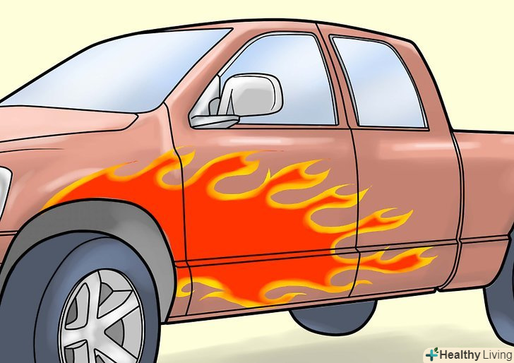 Придумайте особливу аерографію або спортивні смуги.існує безліч самоклеючих дизайнерських рішень, від черепів до вогнів, які можна встановити на ваш автомобіль.