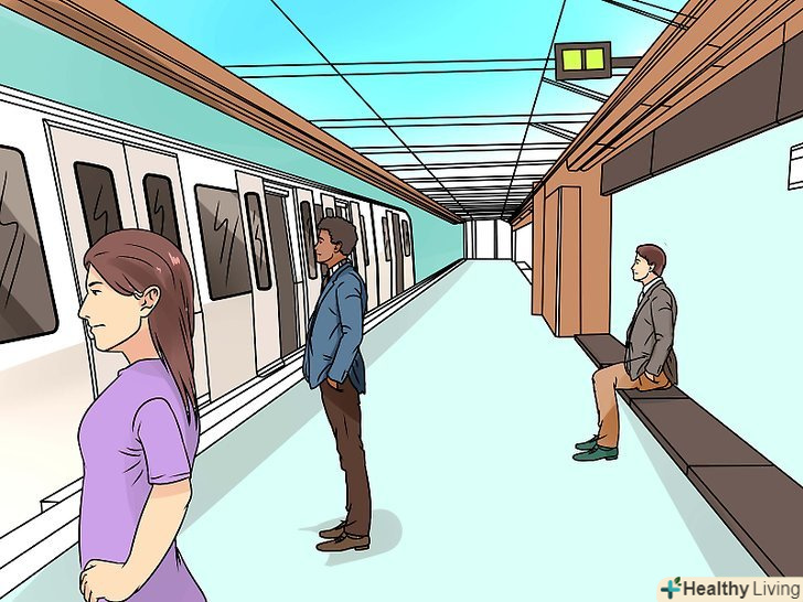 Пройдіть на місце посадки. якщо ви не впевнені в напрямку руху, подивіться по карті або дотримуйтесь покажчиків.- Очікуйте поїзд на платформі на безпечній відстані від рейок. Зверніть увагу на те, де ви стоїте, і куди прибуде поїзд. Дивіться вперед і будьте обережні.