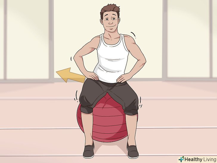Виконайте вправи для таза в положенні сидячи. біль в попереку іноді викликають знаходяться поруч слабші м'язи, які і призводять до травм, змушуючи поперек перетруждаться. М'язи таза входять в основну групу м'язів і, будучи слабкими, можуть викликати поперекові болі. [4] таким чином, зміцнення м'язів таза є відмінним способом боротьби (або запобігання) з болями в попереку.- Розташувавши руки з боків або на стегнах, сядьте на фітбол і поставте ноги на підлогу. Після цього злегка нахиліть таз, втягнувши м'язи живота і перемістивши стегна вперед і вгору, щоб вирівняти поперек. Затримайтеся в такому положенні на кілька секунд, а потім поверніться у вихідне положення.
