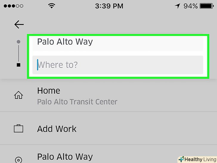 Вкажіть напрямок. Вам також необхідно ввести адресу місця, звідки Вас потрібно забрати, в поле "моє місце розташування", якщо воно відрізняється від місця розташування за замовчуванням.