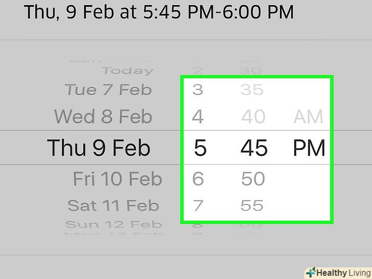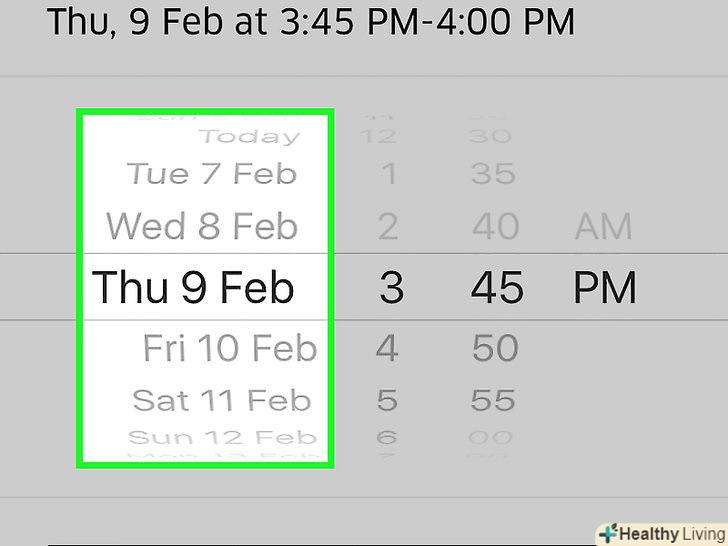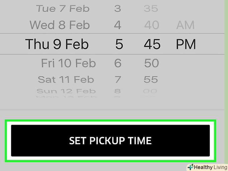 Введіть дату подачі таксі.для цього прокрутіть коліщатко з датами вгору або вниз.- Можна забронювати таксі заздалегідь аж до 30 днів.