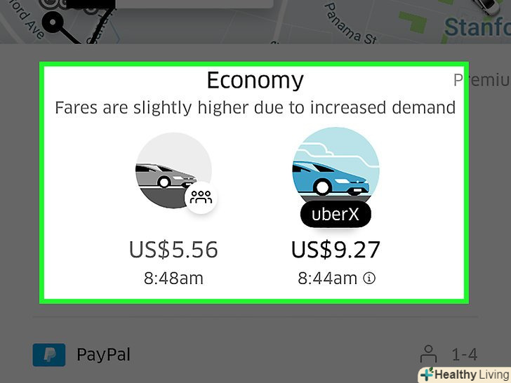 Виберіть послугу. варіанти можуть змінюватися в залежності від місця розташування, однак будуть включати в себе деякі з наступних пакетів послуг:- UberX – найдоступніший варіант для групи до 4 осіб.