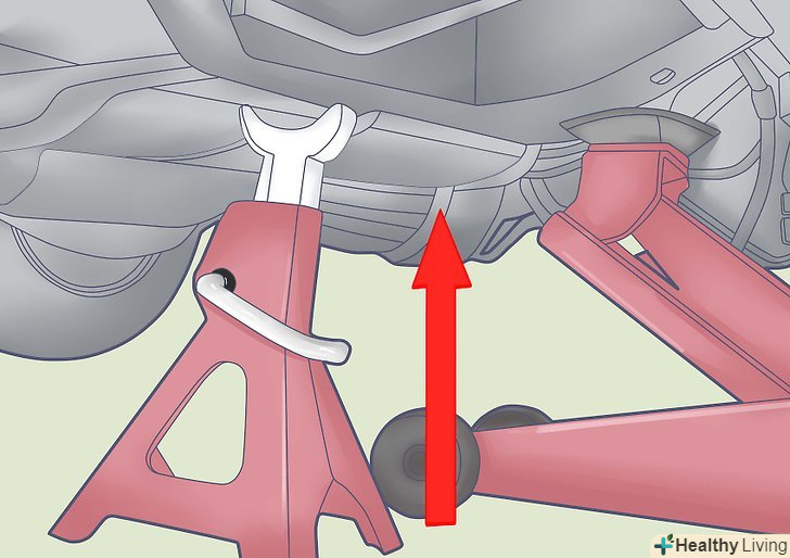 Зніміть ковпаки, підніміть машину і закріпіть її на козлах.зніміть всі чотири колеса.