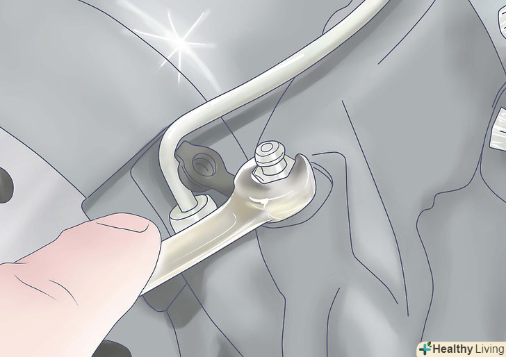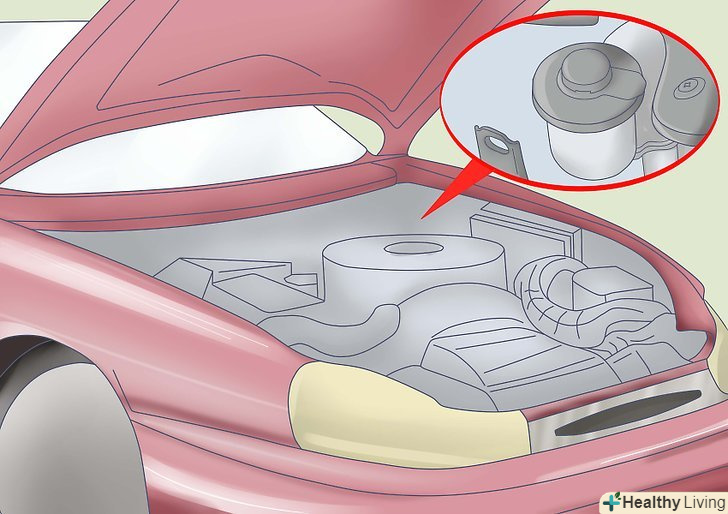 Підніміть капот і знайдіть бачок гальмівної рідини. це прозорий контейнер розміром з кулак або трохи більше, який кріпиться до теплового екрану з боку водія автомобіля. Він буде приєднаний до алюмінієвого предмету, з якого в різні боки будуть стирчати металеві трубки. Ці металеві трубки - гальмівні шланги, що направляють гідравлічну гальмівну рідину до коліс. Там Гальмівна рідина активує дискові або барабанні гальмівні компоненти, які зупиняють автомобіль.