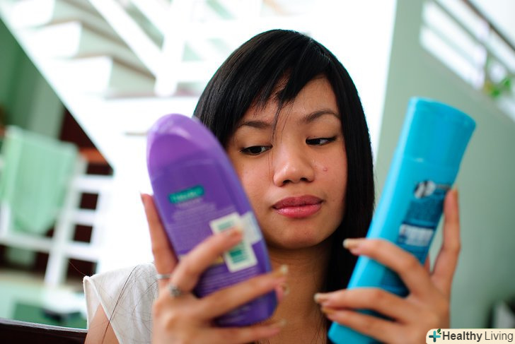 - Уникайте лаурилсульфату натрію. Це пінисте з'єднання є легким подразником. Деякі вважають, що використання шампуню без цього з'єднання вже через два тижні позбавить від лупи. Лупа може повернутися, якщо ви почнете знову використовувати нормальний шампунь.[1]