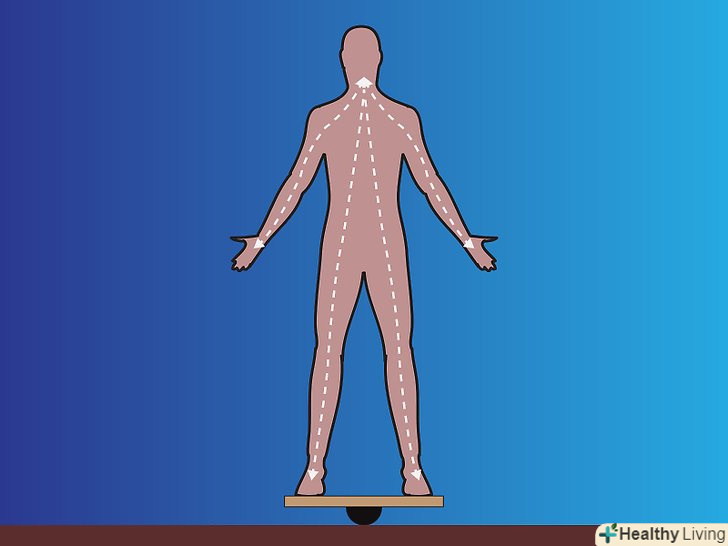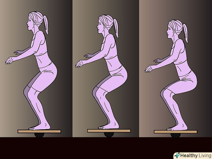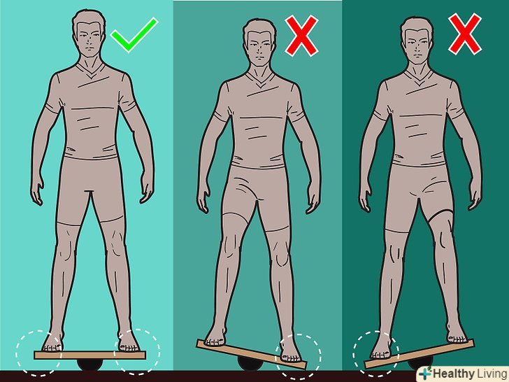 Злегка зігніть коліна.Вам слід почати розгойдуватися на дошці, а ваші м'язи тим самим будуть старанно працювати, щоб підтримувати рівновагу.