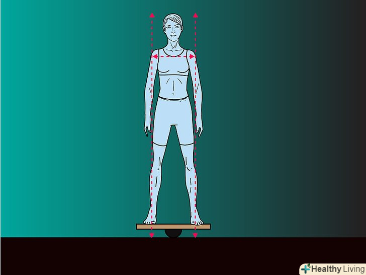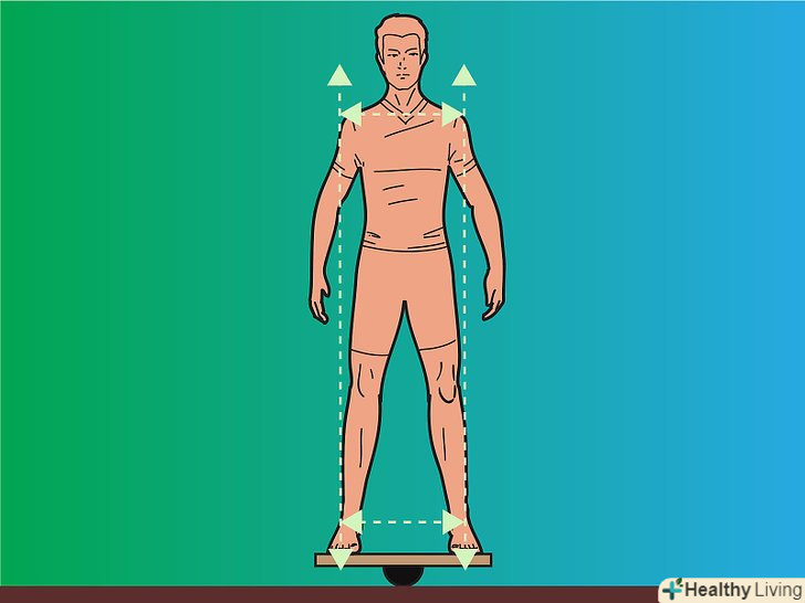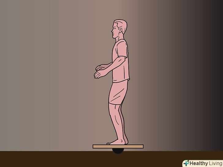 Тримайтеся за стіну.переконайтеся, що ваші стопи знаходяться на ширині плечей на хитній дошці.