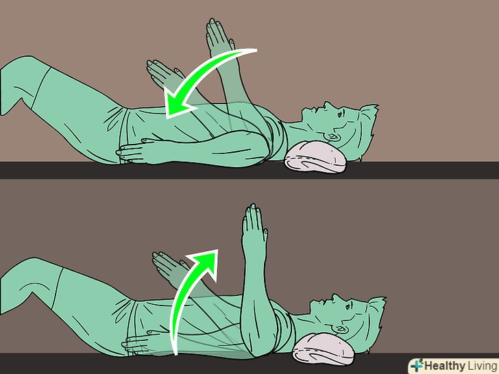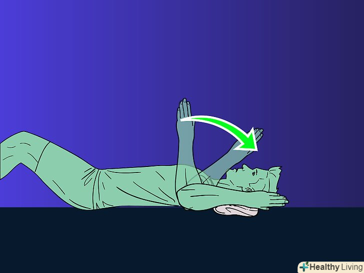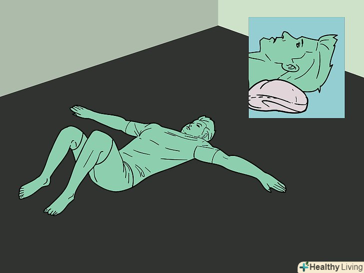 Ляжте на підлогу.покладіть подушку під шию і голову і зігніть ноги в колінах. Витягніть руки по обидва боки.