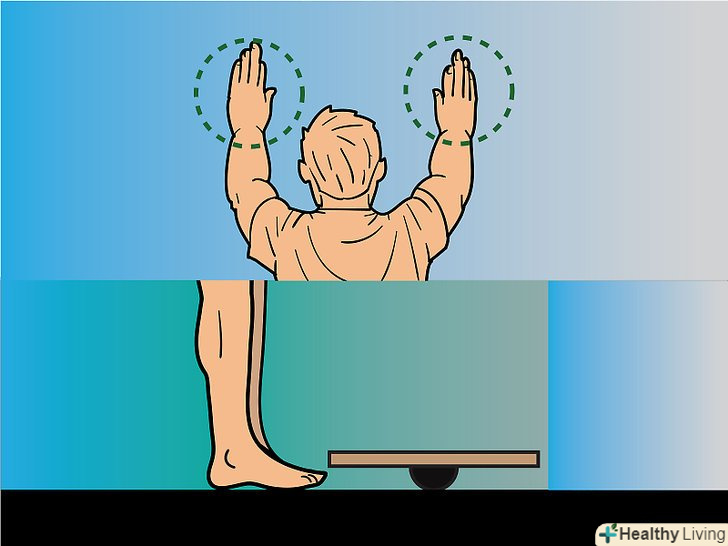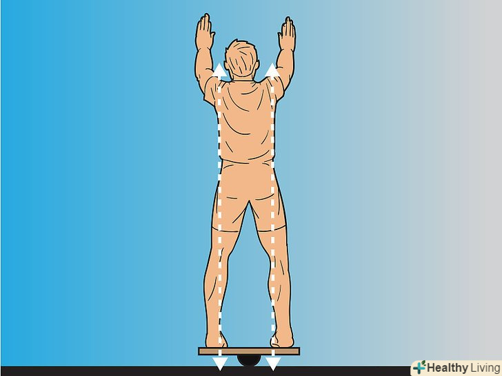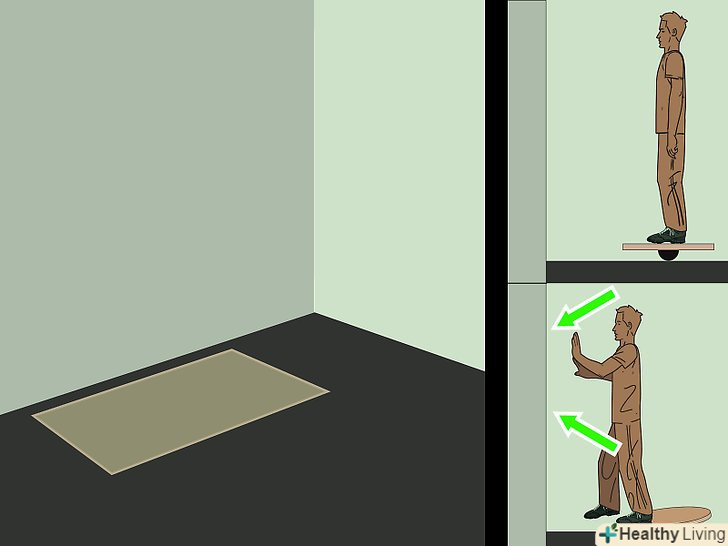 Упріться в стіну обома руками, розташовуючи хитну дошку перед своїми стопами.