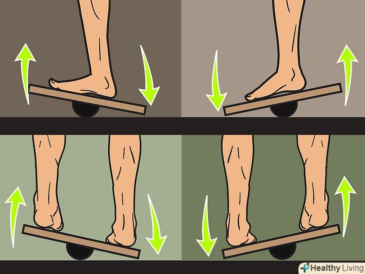 Знайдіть хитну дошку.її можна знайти в більшості спортивних залів або спортивних магазинів.- Гойдаюча дошка допоможе поліпшити пропріорецепцію, що є почуттям позиції ваших частин тіла. Вам в голову відразу ж прийде слово" координація", але пропріорецепція відповідає за внутрішній статус тіла. Якщо всередині організму все працює як слід, то ви знижуєте ризик отримання травми.