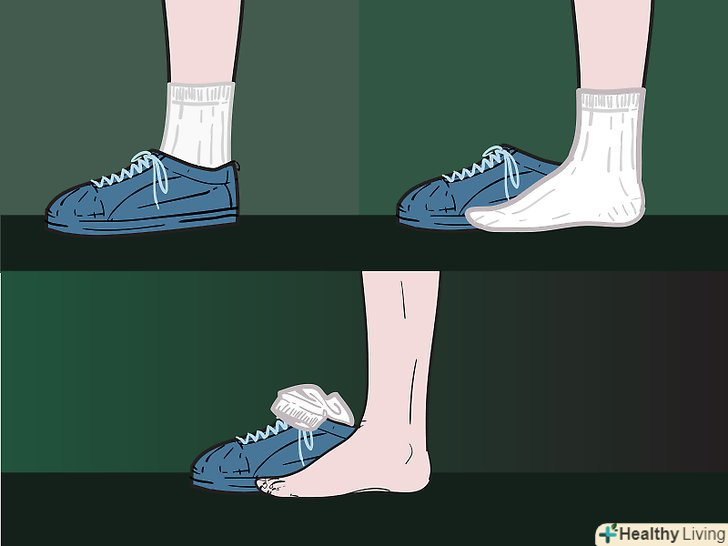 Зніміть взуття та шкарпетки.Пропріорецепцію найкраще покращувати босоніж, головне, щоб у вас було хороше зчеплення з підлогою.- Якщо ви тренуєтеся в спортивному залі, то одягніть кросівки з неслизькою підошвою, але ніколи не займайтеся на гойдається дошці в шкарпетках.