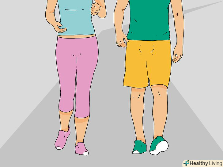 Ходіть пішки разом з другом, щоб пов'язати себе зобов'язаннями.якщо ходити в компанії з одним, буде простіше збільшити кількість кроків, пройдених після роботи і у вихідні дні. Замість відвідування кінотеатру або ресторану запропонуйте друзям піші прогулянки. Такі зустрічі допоможуть вам більше ходити вечорами, щоб досягти поставленої мети.[18]- Якщо зустрітися не виходить, зателефонуйте другу або родичу з іншого міста і говорите по телефону під час прогулянки.