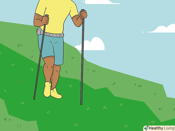 Займіться новим видом спорту, для якого потрібно ходити пішки.піший туризм, теніс або бадмінтон дозволяють значно збільшити кількість пройдених кроків, особливо якщо вам вдається провести кілька матчів поспіль або ходити на великі відстані. Виберіть такий вид спорту, який вам подобається і яким можна займатися з одним. Спорт дозволяє вести активний спосіб життя і проходити 10000 кроків в день.[20]- Якщо тенісний корт знаходиться неподалік, спробуйте добиратися на матчі пішки.