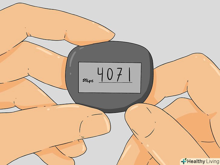 Купуйте крокомір.такий пристрій можна придбати онлайн і в магазині спортивних товарів. В інтернет-магазині звичайний крокомір для підрахунку кроків обійдеться вам приблизно в 1000 рублів. Також можна купити фітнес-браслет, наприклад Xiaomi Mi Band або Honor Band, щоб відстежувати не тільки пройдену відстань, але також серцевий ритм і режим сну. Ціни на такі пристрої коливаються від 1500 до 5000 рублів.[1]- Звичайний крокомір кріпиться на ремені або брюках і фіксує кожен рух стегна вгору і вниз.[2]