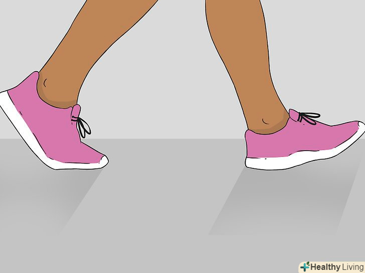 Купуйте зручне взуття для ходьби.перед збільшенням щоденної кількості кроків слід купити комфортне взуття, яке підходить для ваших повсякденних справ. Таке взуття дозволить вам уникнути травм, особливо при збільшенні щоденної кількості кроків.[5]- Якщо на роботі прийняті суворі вимоги до одягу, купіть спеціальні устілки і зробіть робоче взуття більш комфортним.