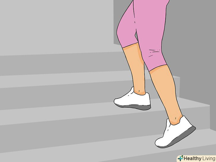Піднімайтеся по сходах і не використовуйте ліфт.якщо відмовитися від використання ліфта протягом робочого тижня, то ви збільшите кількість пройдених кроків. Якщо ви живете або працюєте в багатоповерховій будівлі, просто почніть ходити по сходах і не користуйтеся ліфтом. Це дозволить вам збільшити кількість пройдених кроків без особливих змін звичного розпорядку дня.[10]- Також обходьте стороною ескалатори і ходите по сходах.