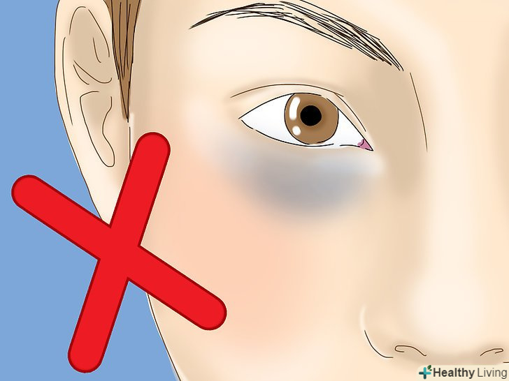Позбавтеся від темних кіл під очима.у багатьох людей є темні кола під очима навіть після повноцінного відпочинку, але такий вид асоціюється з втомою. Насправді причина кіл під очима криється не в нестачі сну, але при втомі вони стають більш видимими, так як шкіра блідне, а очі западають в очниці. При будь-якій причині виникнення подібних кіл існують способи мінімізувати проблему:[13]- Прикладіть холодний компрес (особливо ложки!), щоб позбутися від кіл і набряклості очей.